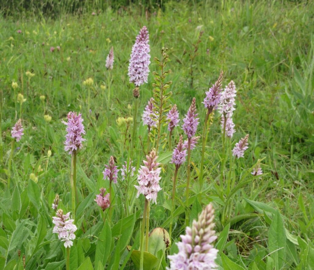Just in front of me in the long meadow grasses a spot a small patch of Common Spotted Orchids, maybe 15-20 in total. The ‘Common’ name is a bit misleading as, whilst not rare, they are certainly not an everyday find, so I am really happy to see them in good numbers here.