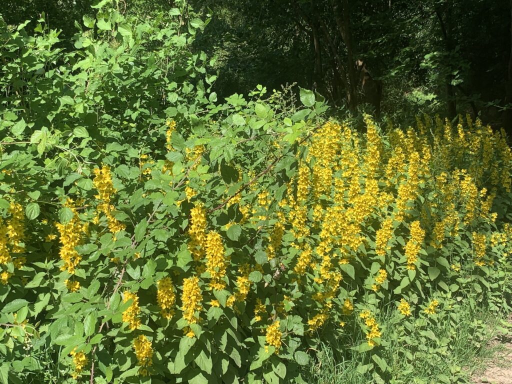 Another tall yellow plant is just over to our right, it’s Common Agrimony. This plant is a member of the Rose family. Agrimony in old English meant ‘thankfulness’, believed to from the relief of those suffering from urinary or respiratory infections that it was used to help. If you see Common Agrimony, smell the flowers as the scent, although faint, smells of apricot.