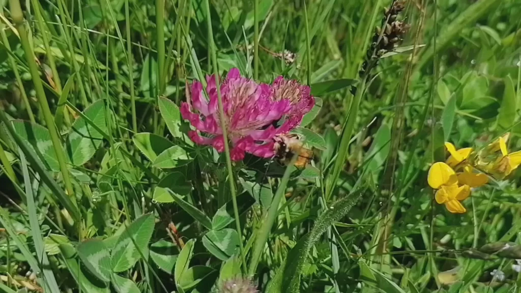 The meadow is several hectares, edged by the ancient woodland to the north, and a road to the south and east. I follow the path in a westerly direction and immediately spot the zig-zag clover, which looks similar to the more common red lover but the flowers are more of a purple colour, whilst the leaves are slimmer and less hairy.