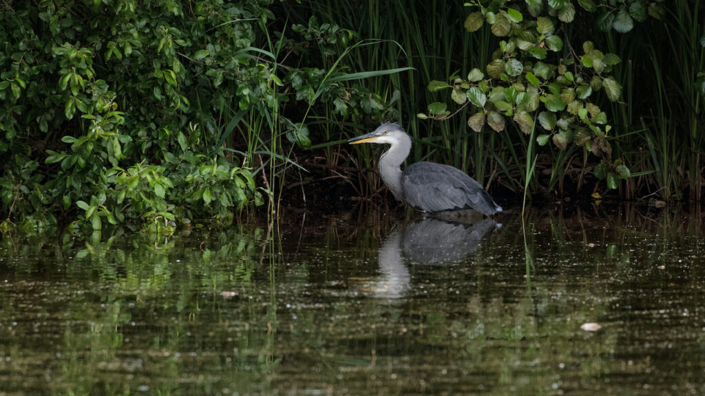 I sat quietly, enjoying the relaxing river sounds, and saw a Heron, statuesque but highlighted against the far bank. The heron jabbed its long beak towards the bank, and a squeal was heard as it had caught a common frog. Despite the alarm call of the frog, within two flicks of the heron’s beak, it had centred the frog and swallowed it. The heron took a few more long-legged strides and re-positioned itself, hoping to find another meal.