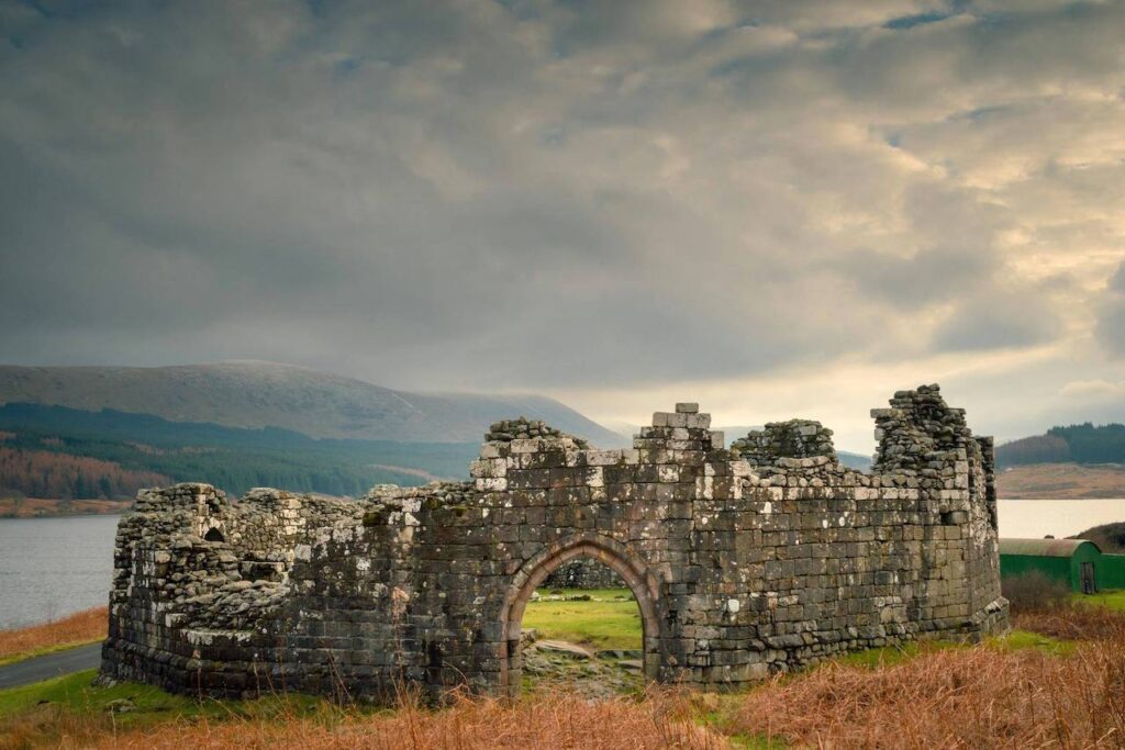 At the far end of the loch, Loch Doon Castle rises from the shoreline with the quiet authority of something that has outlasted almost everything around it. Its stones are dark with age, its walls shaped by centuries of Highland wind and rain, and its connection to Robert the Bruce gives it a weight that no amount of weathering can diminish.