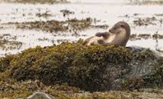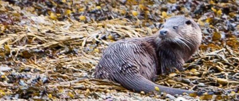 When it reached the rocky shore of Loch Doon, it pulled itself from the water without pausing, shook off briefly, then lowered its nose to the rocks and boulders, sniffing carefully for anything the tide might have left. After a short while, the otter seemed satisfied and stopped. It pressed its back against a seaweed-covered rock, stretched out comfortably, and began to groom itself.